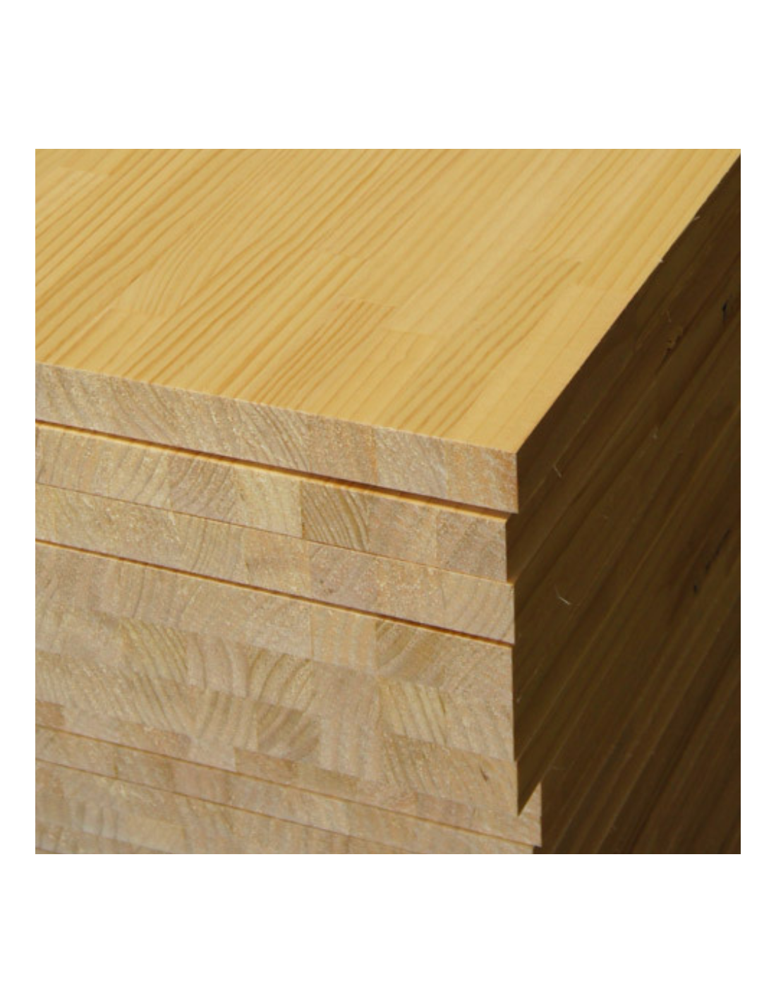 Tablero alistonado de Pino Insignis creado a partir de un conjunto de listones encolados en sus testas y cantos de mismo ancho y grosor, todos de lama entera.