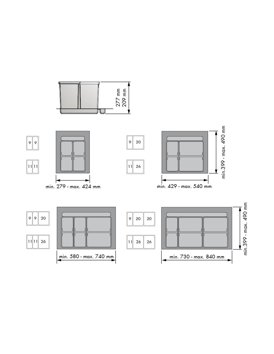 Cubos de basura adaptable a cualquier cajón. Incluye etiquetas identificativas para cualquier residuo.