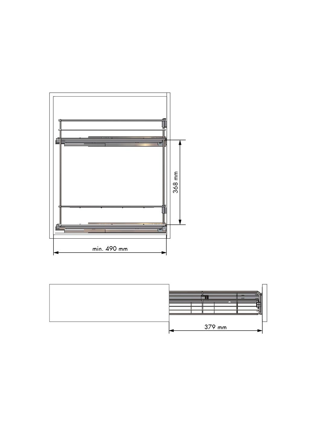 Botellero con guías Hettich laterales. Adaptado para módulos de 16 y 19 mm de grosor. Hasta 30 Kg.