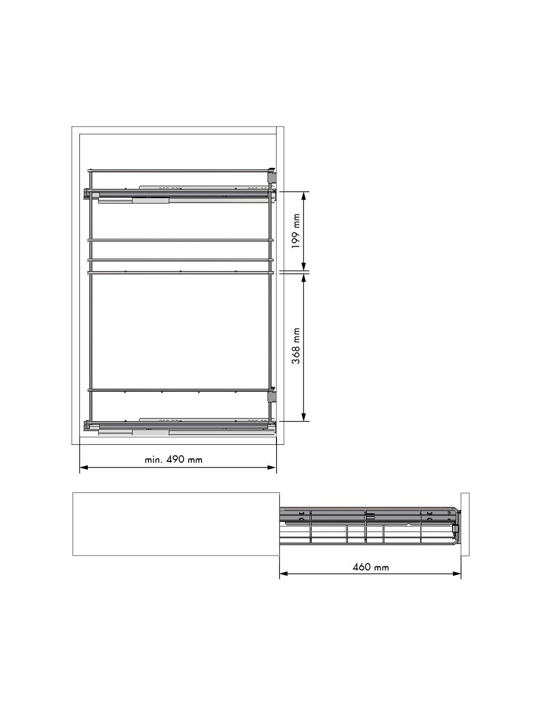 Botellero con guías Hettich laterales. Adaptado para módulos de 16 y 19 mm de grosor. Hasta 30 Kg.