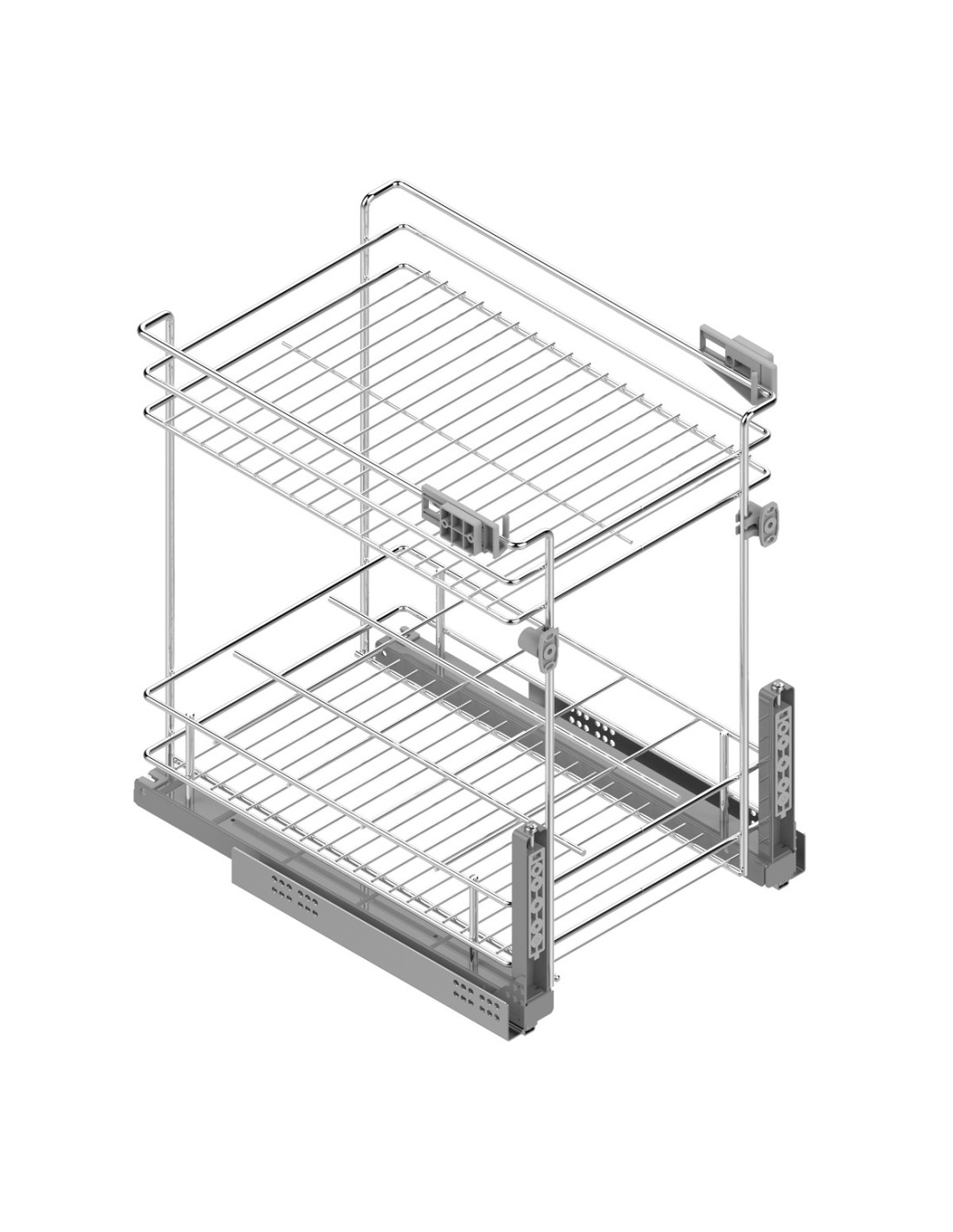 Botellero con guías Hettich laterales. Con cierre amortiguado. Adaptado para módulos de 16 y 19 mm de grosor. Hasta 30 Kg.