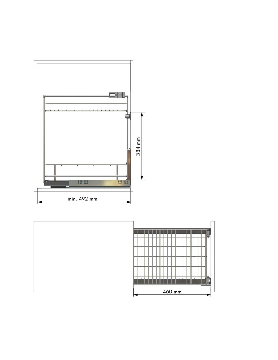 Botellero con guías Hettich laterales. Con cierre amortiguado. Adaptado para módulos de 16 y 19 mm de grosor. Hasta 30 Kg.
