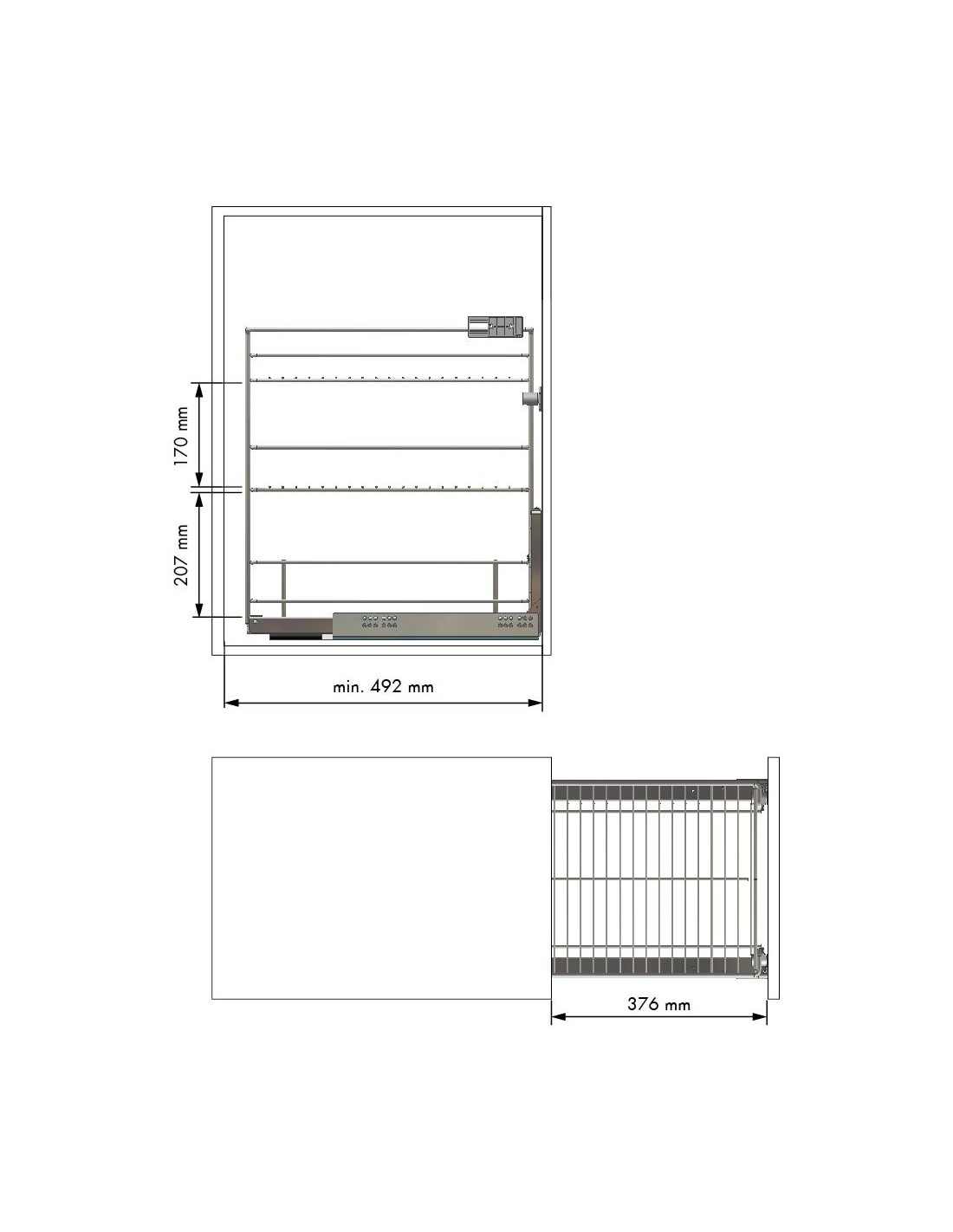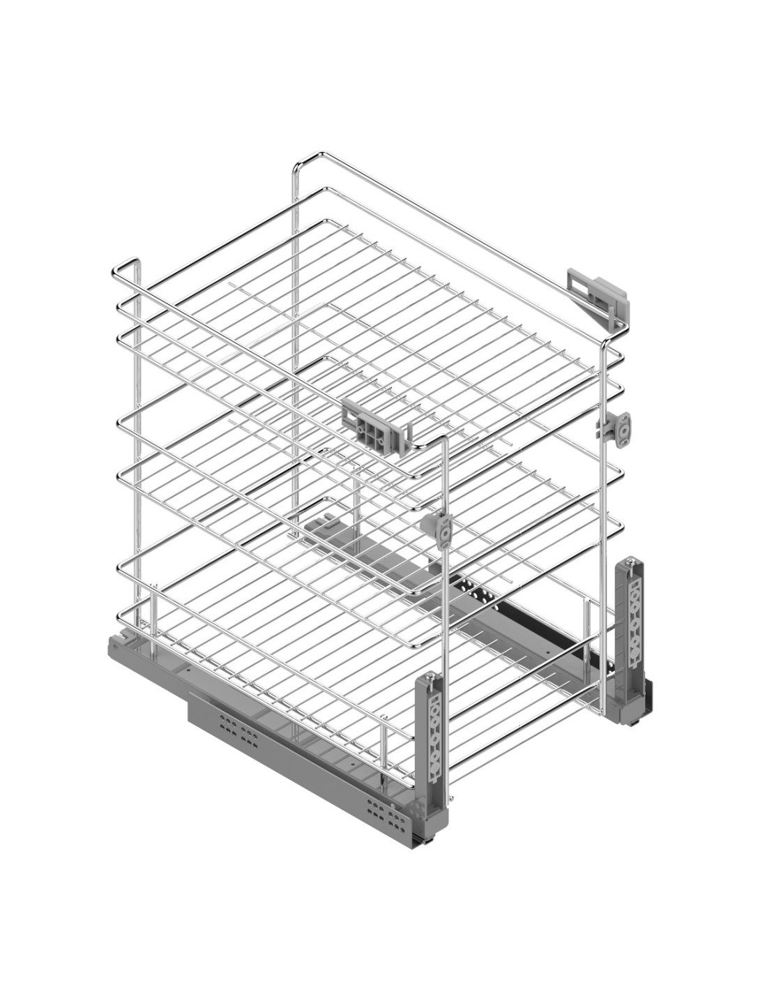 Despensor extraible con guías Hettich laterales. Con cierre amortiguado. Adaptado para módulos de 16 y 19 mm de grosor. Hasta 30 Kg.