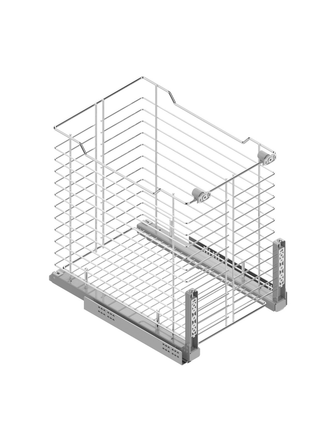 Tolva con guías Hettich. Con cierre amortiguador y extracción total. Carga maxima de 30 Kg. Adaptable para módulos de 16 y 19 mm.