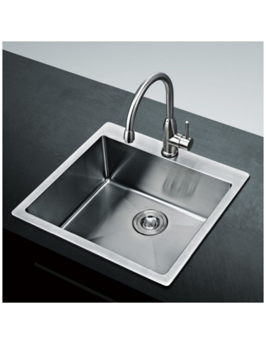 Fregadero de acero inoxidable, de una sola pieza de 12 mm. En acero de 304. Capa de pintura anti-humedad. Instalación sobre encimera.