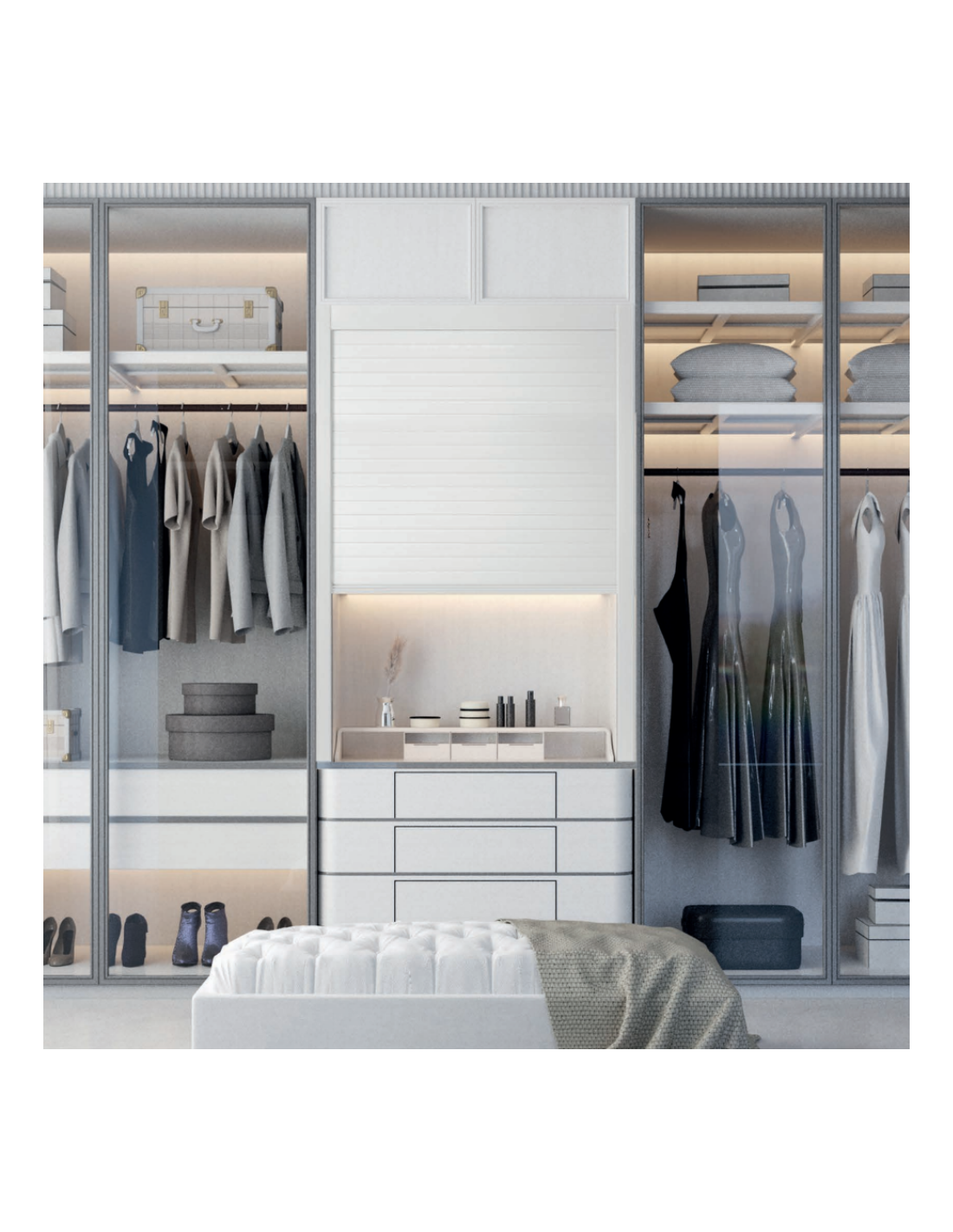 Kit de persiana metálico, cuenta con una estructura y lamas metalicas. Permite reforzar la fuerza de la caída y ser cortada en altura. Para módulo de 16 y 19mm, especificar en pedido.