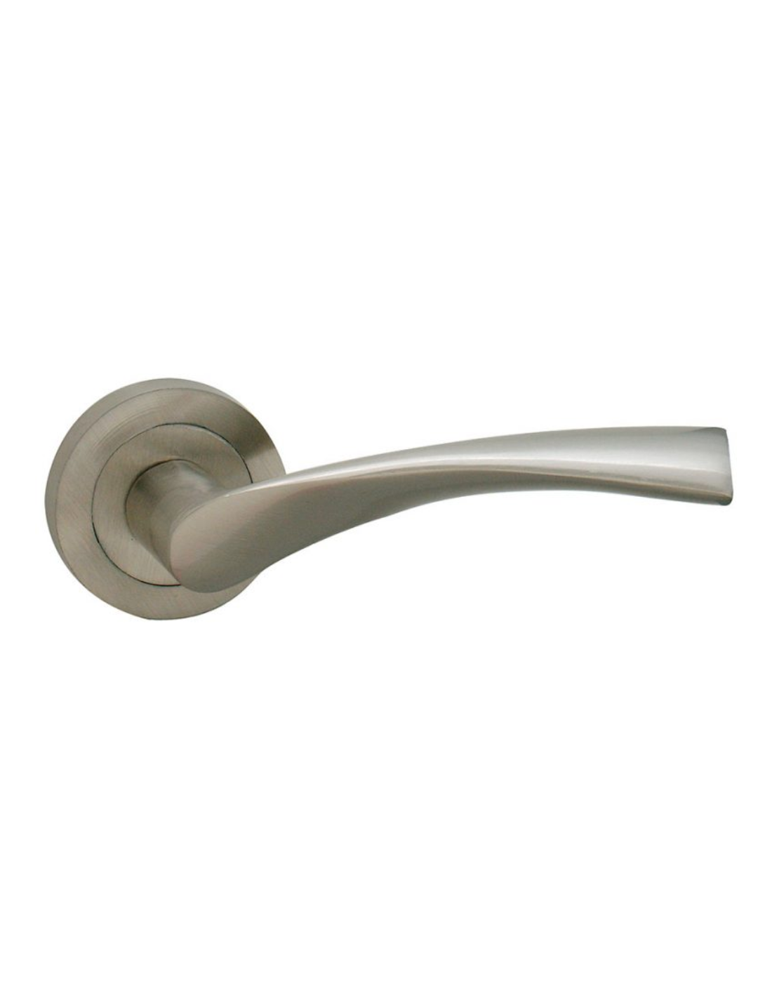 Manecilla níquel satinado con roseta redonda modelo EQ-R150, clásica, en tendencia y combinable con cualquier modelo de puerta.