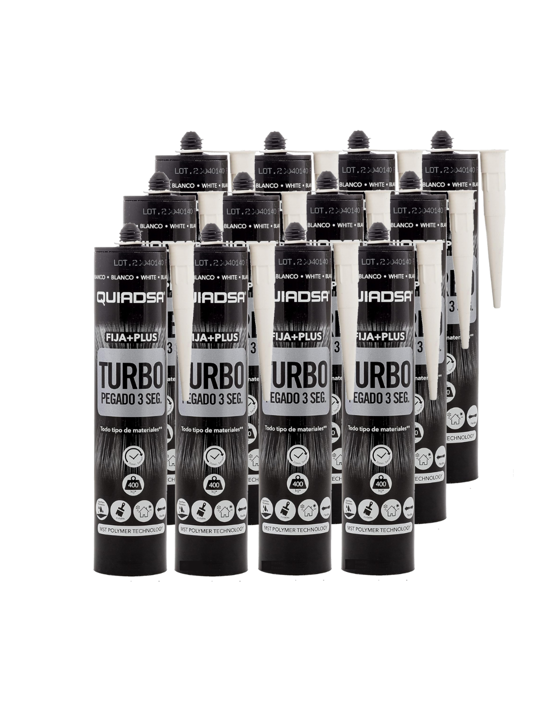 Caja Completa de 12 unidades de Turbo Blanco de 290ml. Consigue una sujeción inmediata en sólo 3 segundos con un acabado elástico y duradero.