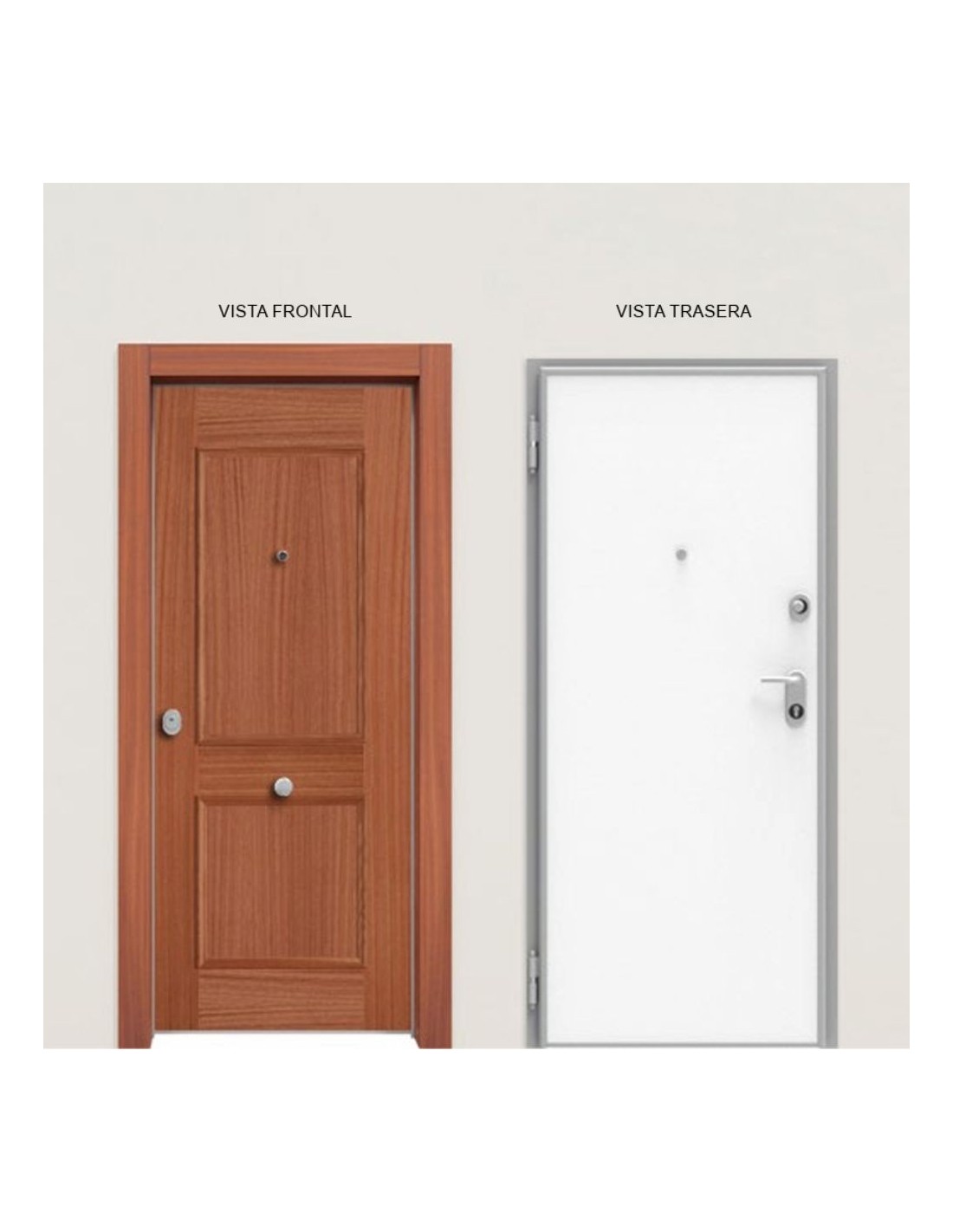 Puerta acorazada, con un grado 3 de seguridad y aislamiento acústico de 27 dB. Incorporando el pomo central, la manivela y la mirilla. Incluye los paneles decorativos especificados y el premarco metálico + el premarco de madera. Las medidas de paso disponibles son: 804x2014 / 2034. Para tabique de 14 con tapetas incluidas (premarco mixto). Con posibilidad de complementos adicionales, para más información, póngase en contacto. Marco y paneles no colocados.
