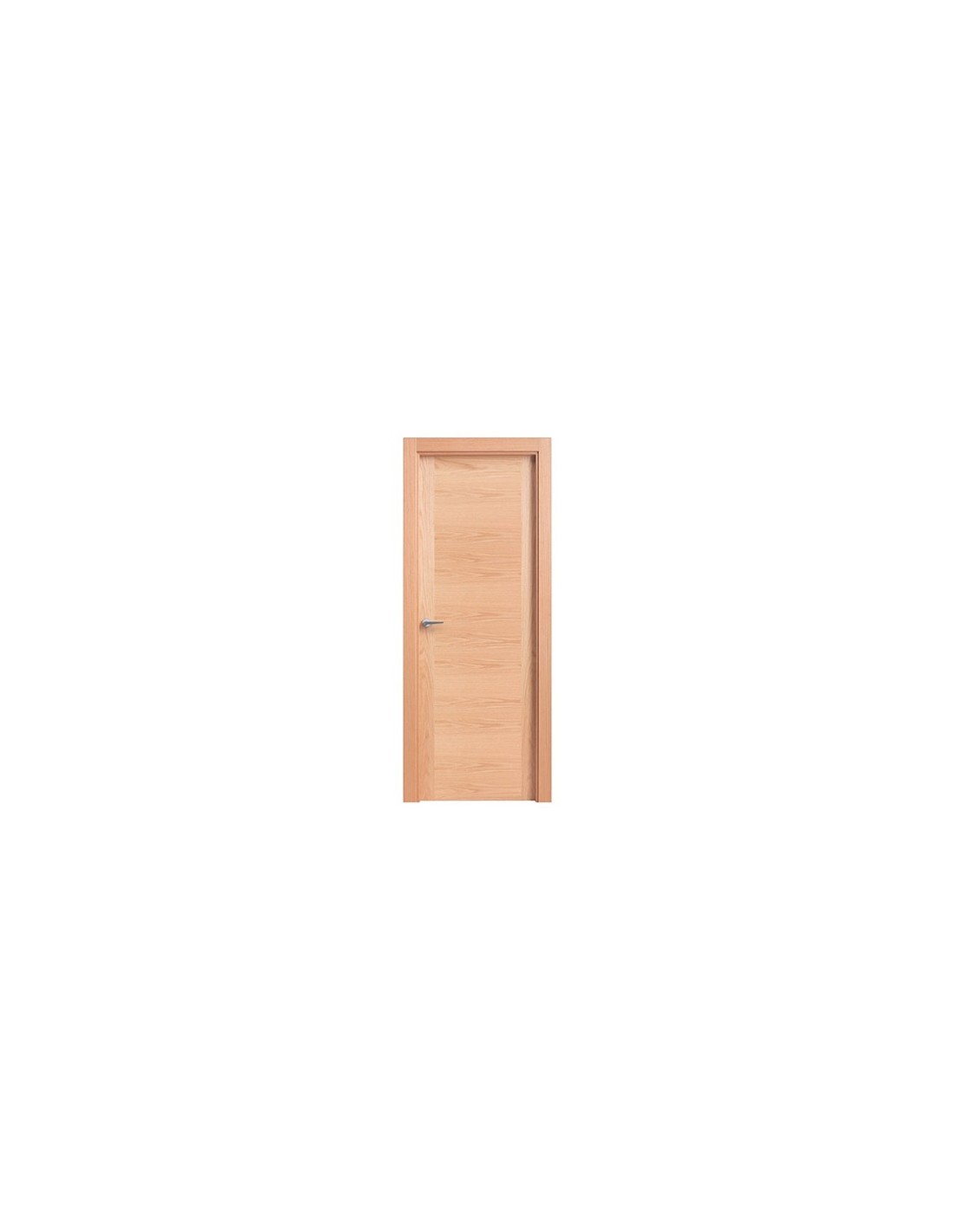 Hoja lisa suelta semimaciza, con un interior de aglomerado, y ranurado sobre listón de madera ofreciendo una alta calidad y resistencia. Reforzada con dos chapas metálicas en su interior. Hoja chapada en madera natural en crudo y recerco macizo de haya vaporizada. Diseñada para aportar elegancia y seguridad. Medida de hoja: 203x82,5x45.