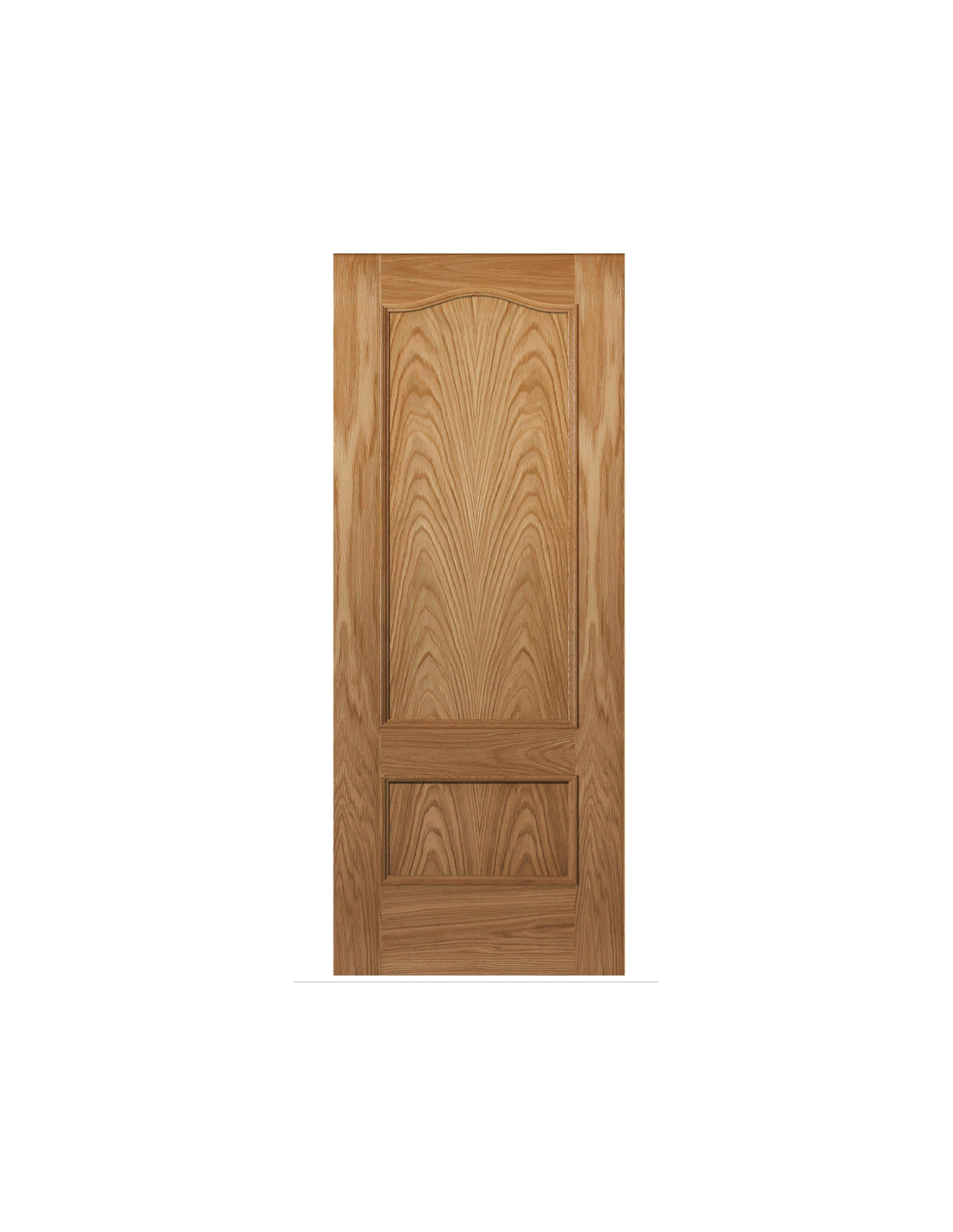 Hoja lisa suelta semimaciza, con un interior de aglomerado, ofreciendo una alta calidad y resistencia. Hoja chapada en madera natural en crudo y recerco macizo de roble.