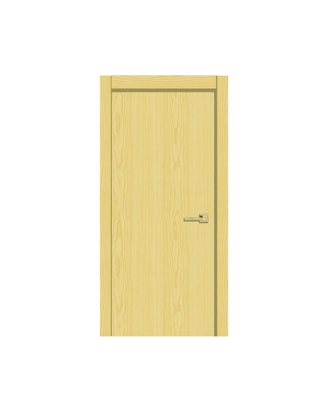 Hoja lisa suelta semimaciza, con un interior de aglomerado, ofreciendo una alta calidad y resistencia. Hoja chapada en madera natural en crudo con recerco macizo de pino melis.