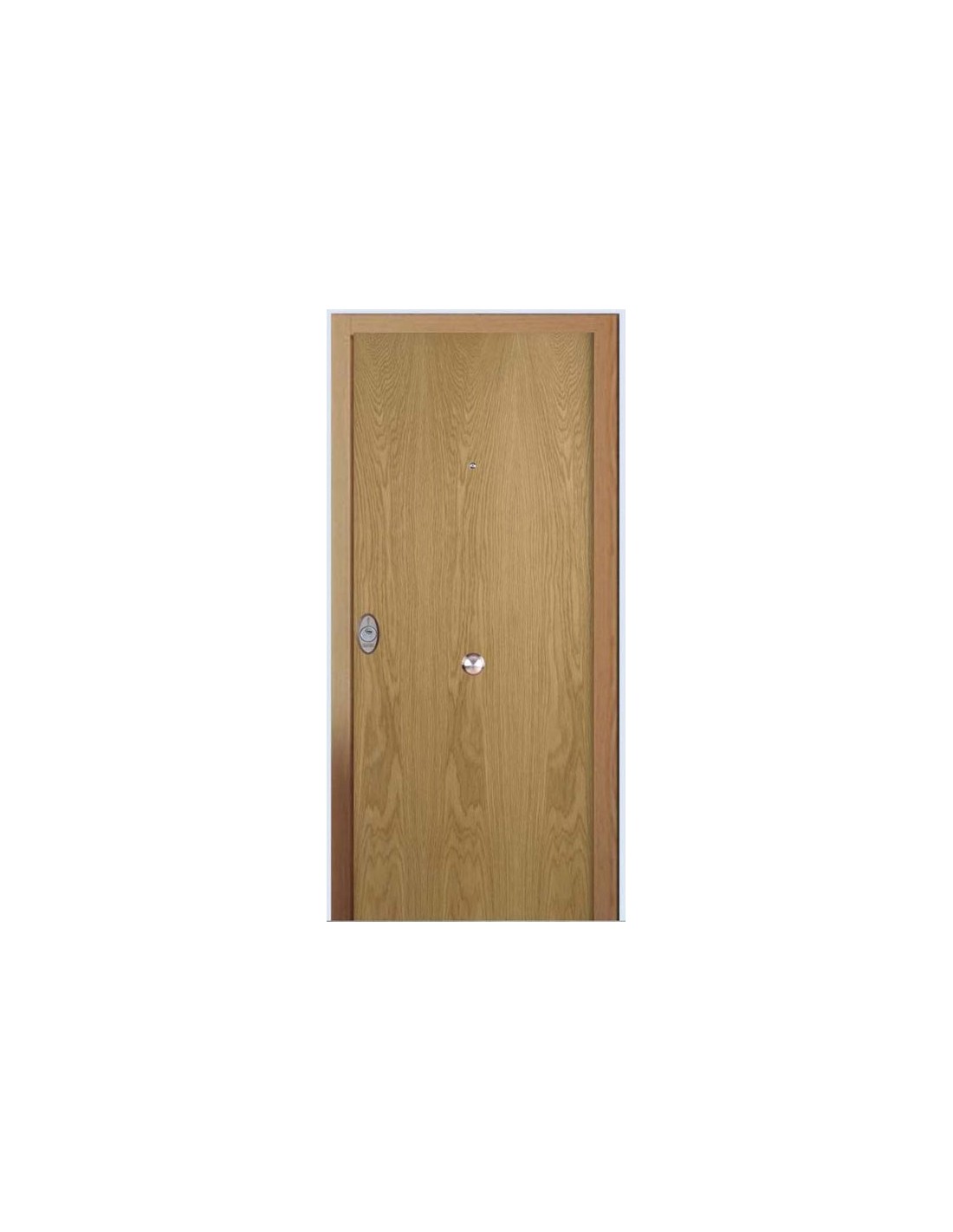 Hoja suelta de entrada blindada de alta calidad, con un interior de aglomerado, recubierto por una plancha de acero de 0,5 mm por lado y recerco macizo de roble. Pensada para un alto nivel de seguridad.
