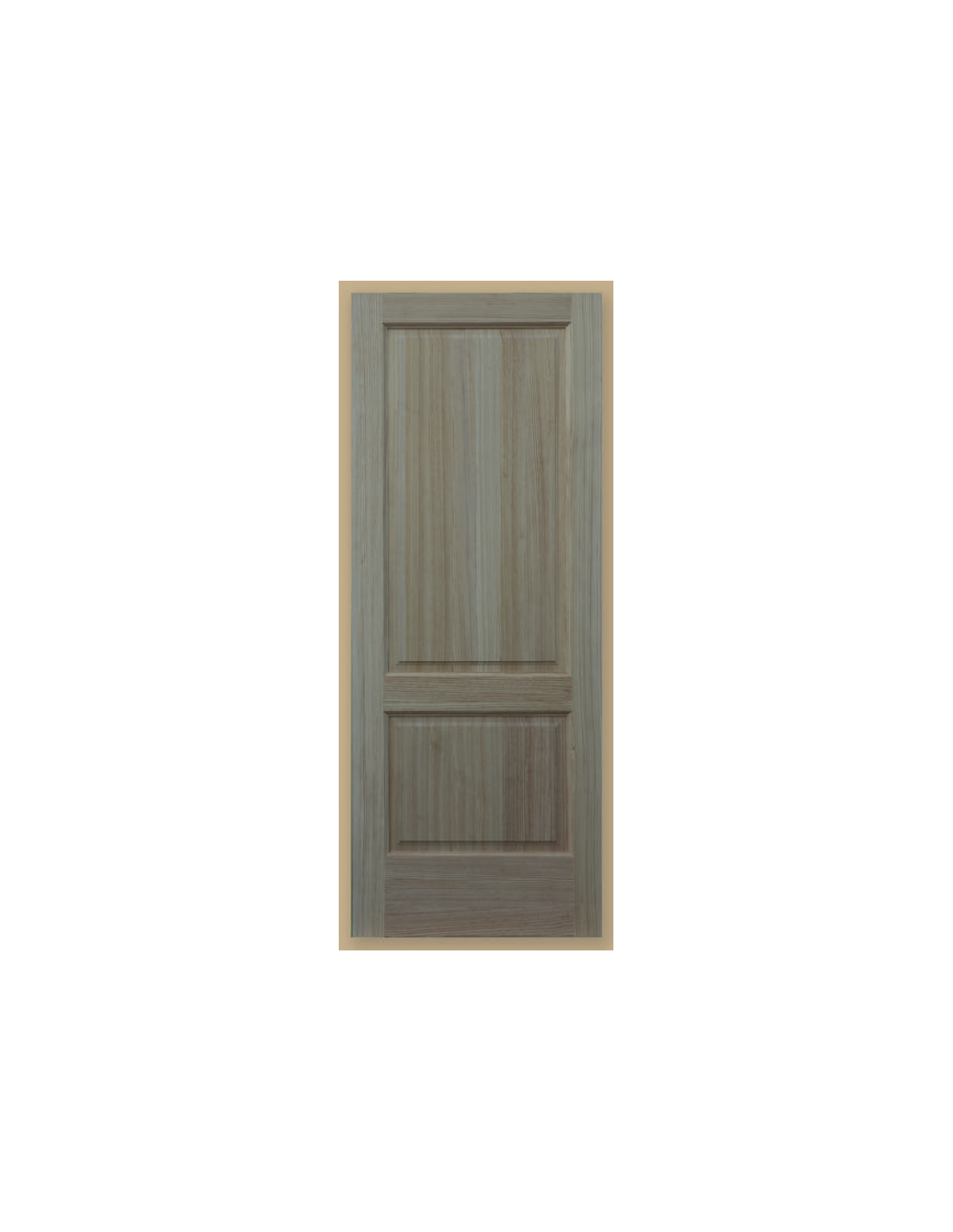 Hoja maciza de exterior en crudo. Puerta de flandes de exterior entrecallada con dos cuadros.