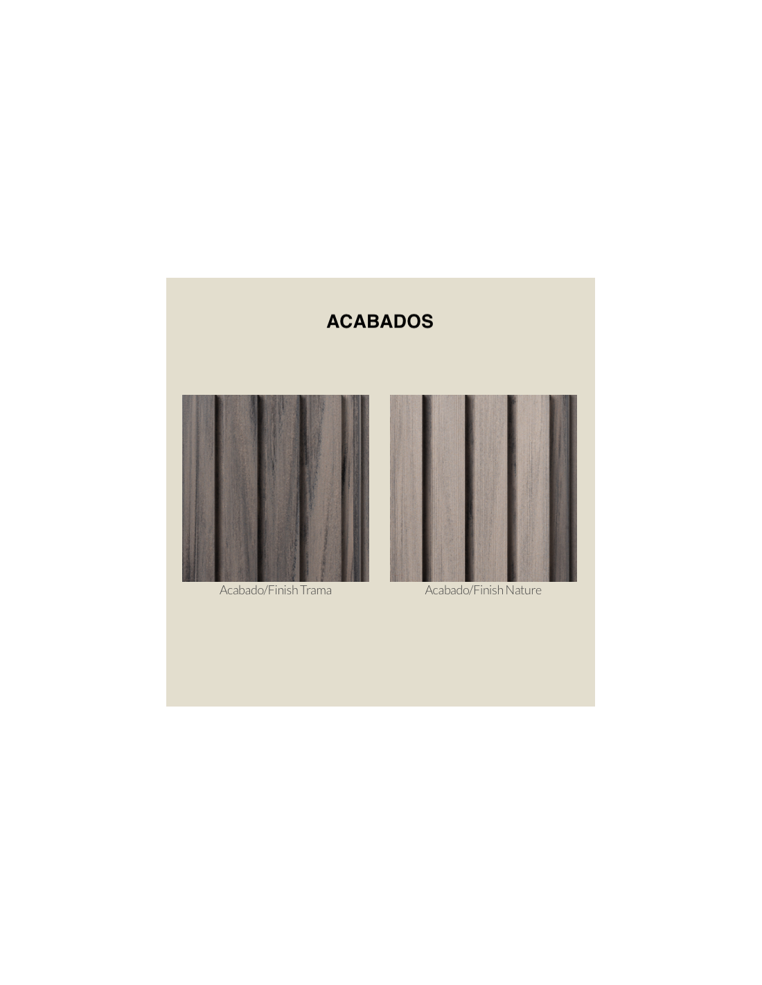 Nuestros paneles decorativos disponen de diferentes medidas y acabados, ideales para cambiar el aspecto de tu cocina, salón o baño. Su composición WPC los hacen totalmente hidrófugos e ignífugos lo que confiere al producto unas inmejorables cualidades técnicas, mayores que los paneles MDF. El acabado Nature, de aspecto cepillado, es ideal tanto para interior como para exterior mientras que el acabado Trama, que es liso, es sólo apto para interiores. Lama de 300x21,75x1,5 cm. Portes no incluidos.