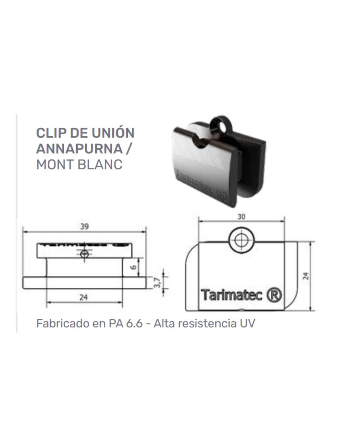 Clip de montaje para unir los rastreles de aluminio para la colocación de perfiles de exterior Montblanc o Annapurna 50. Portes no incluidos.