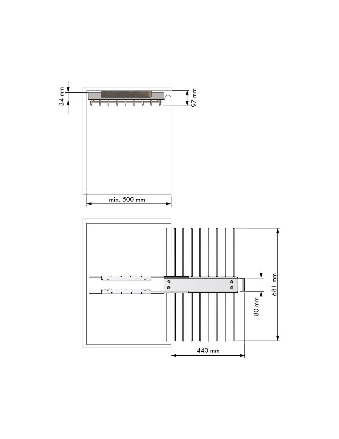 Soperte percha extraible. Con una carga máxima de 15 Kg. Disponible en diferentes profundidades.