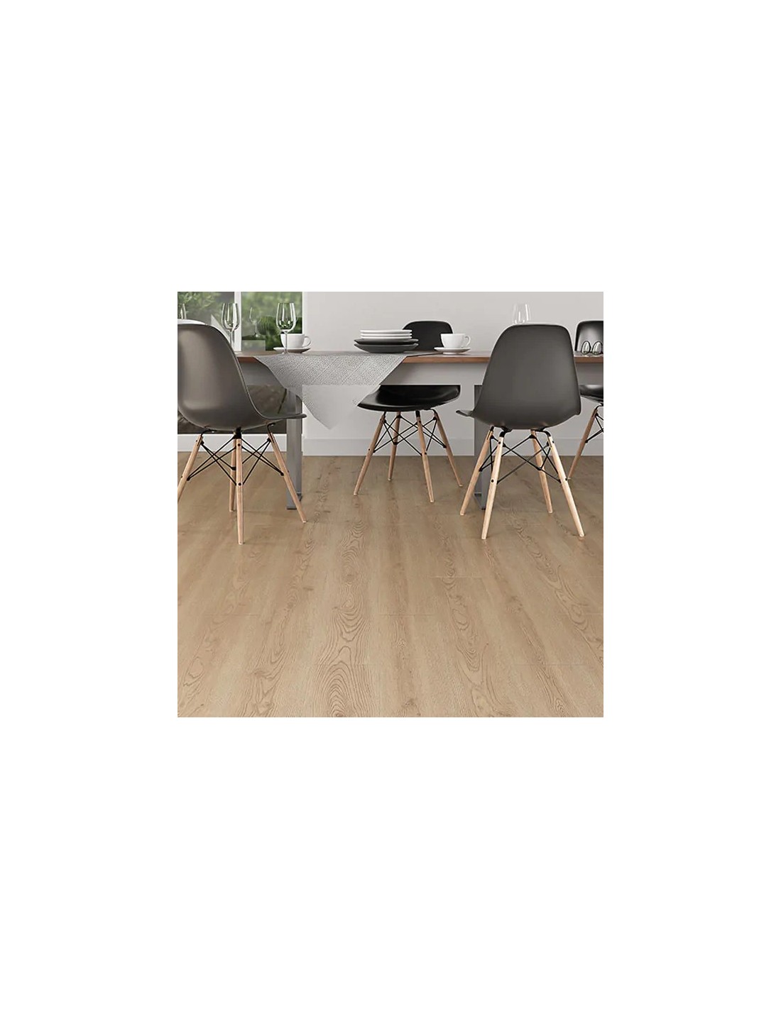 Paquete de suelo Faus de la colección Eco, suelo laminado hidrófugo. Esta unidad cuenta con 2,3 metros cuadrados por paquete.