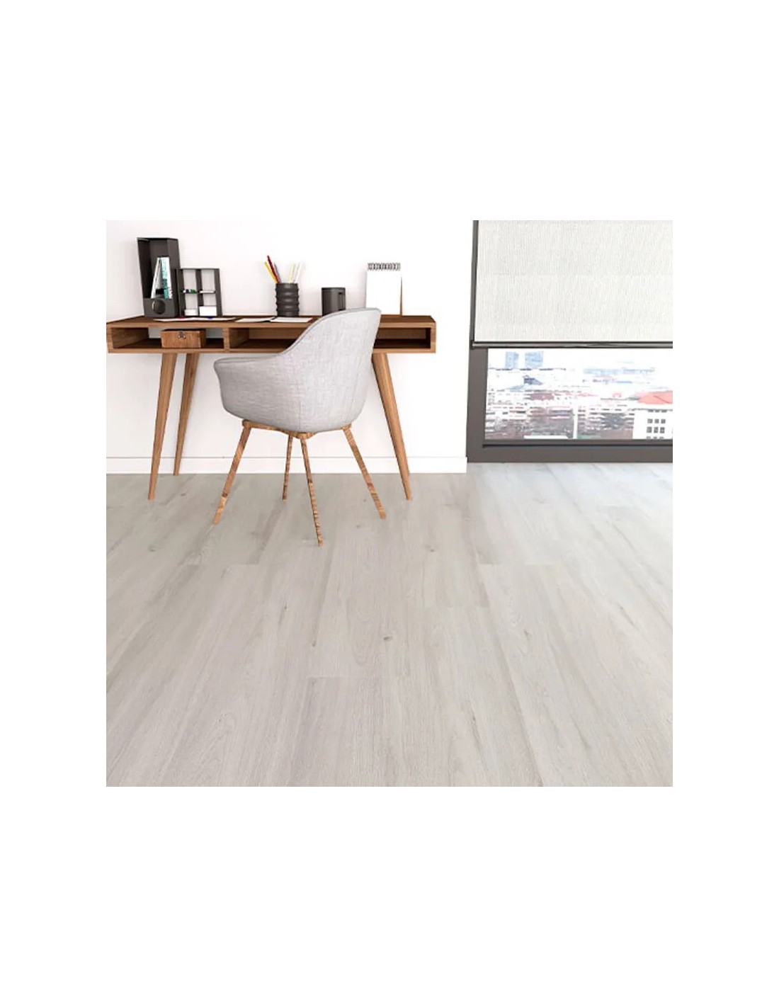 Paquete de suelo Faus de la colección Eco, suelo laminado hidrófugo. Esta unidad cuenta con 2,3 metros cuadrados por paquete.