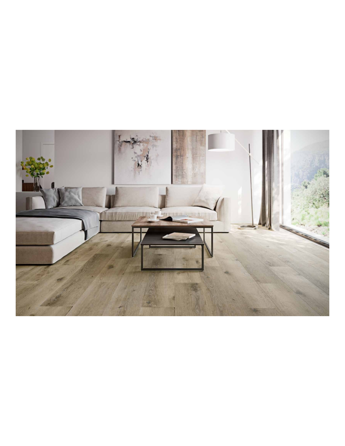Suelo de SPC Kerlux compuesto de un 25% de PVC y un 75% de minerales convirtiéndolo en un suelo resistente AC5 con infinitas posibilidades. Su exclusiva capa superior extrasuave es increiblemente cómoda para caminar sobre ella reduciendo en 21dB la sonoridad de la pisada. Apto para suelo radiante, cuenta con una capa acústica y sistema click para un montaje rápido y sencillo. Resulta ideal para el baño y la cocina por su ultrarresistencia a la humedad al ser hidrófugo con juntas estancas; también es perfecto para zonas de alto tránsito como tiendas, hoteles u hospitales por su capa protectora. La colección Teide se presenta en lamas de 1524x230x5,5/0,55mm en cajas de 2,45m2. Nuestro suelo SPC es reciclado y reciclable y el primero en ser fabricado íntegramente en España.