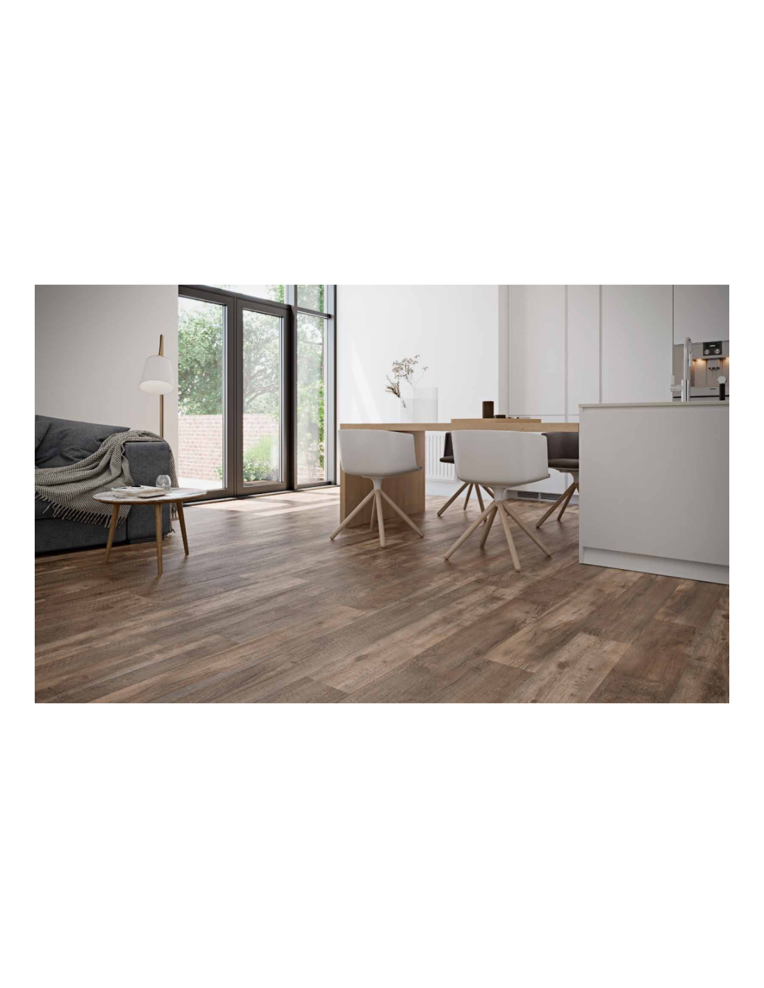 Suelo de SPC Kerlux compuesto de un 25% de PVC y un 75% de minerales convirtiéndolo en un suelo resistente AC5 con infinitas posibilidades. Apto para suelo radiante, cuenta con una capa acústica que reduce 21dB el sonido y sistema click para un montaje rápido y sencillo. Resulta ideal para el baño y la cocina por su ultrarresistencia a la humedad al ser hidrófugo con juntas estancas; también es perfecto para zonas de alto tránsito como tiendas, hoteles u hospitales por su capa protectora. La colección Baza se presenta en lamas de 1220x183x5,5/0,55mm con opción de acabado con microbisel a 4 cantos, en cajas de 2,46m2. Nuestro suelo SPC es reciclado y reciclable y el primero en ser fabricado íntegramente en España.