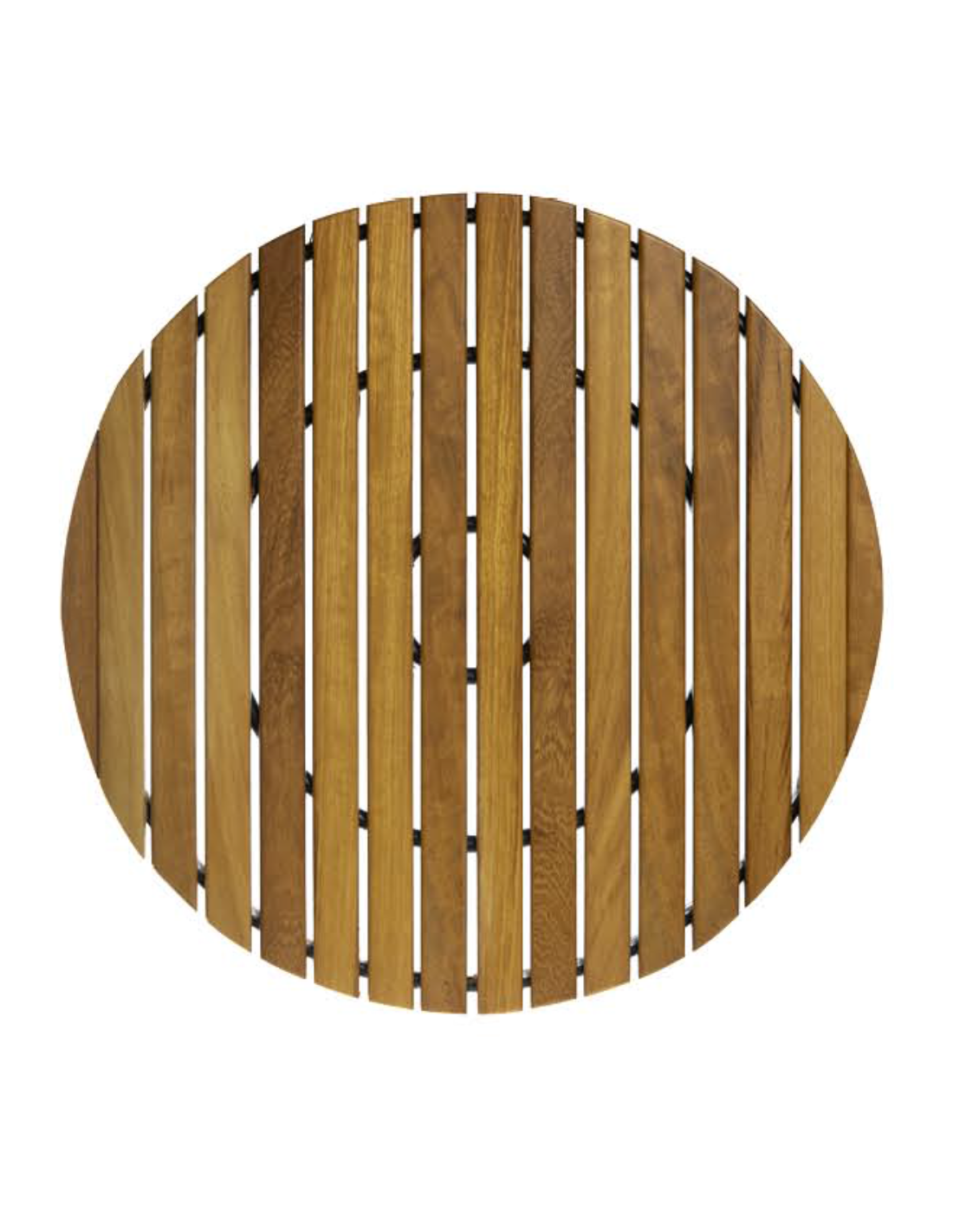 Rollo de tarima flexible de Iroko o Teka Africana sin elementos metálicos. Tratado con aceite vegetal protector y repelente al agua. Apta para interiores y exteriores. Con esquinas redondeadas, fácil de cortar y unir realizado con lamas de 34x15mm y con manguera de PVC flexible y aislante del suelo. Con certificado FSC y PEFC. Precio de rollo