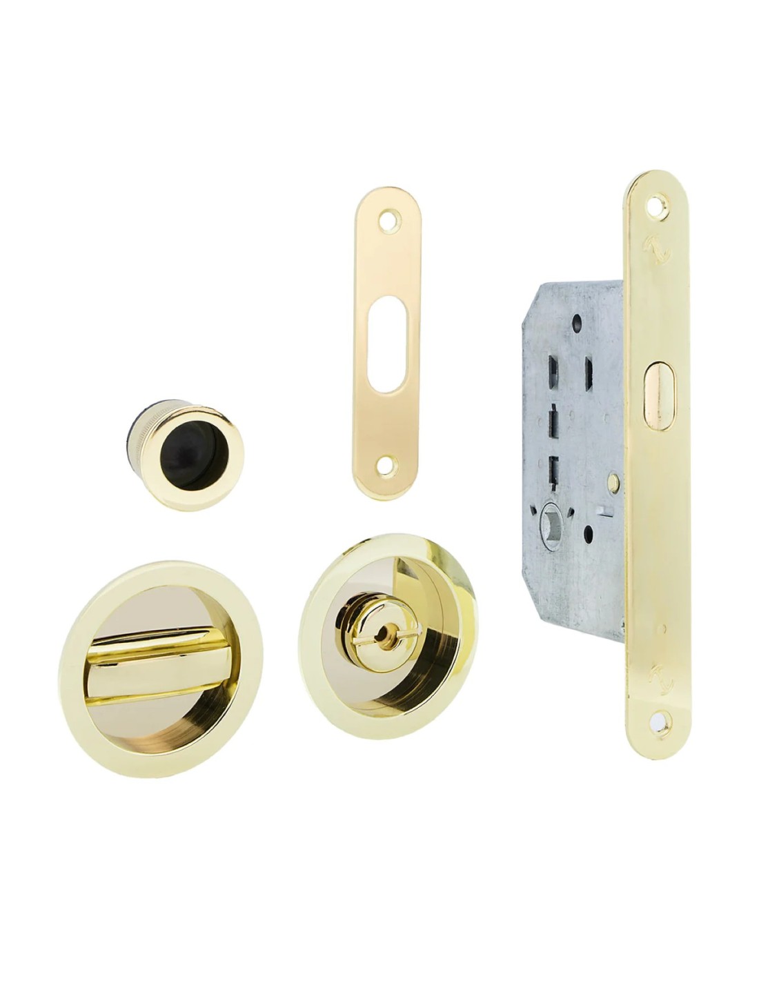 Conjunto kit uñero redondo dorado con condena para puertas correderas.