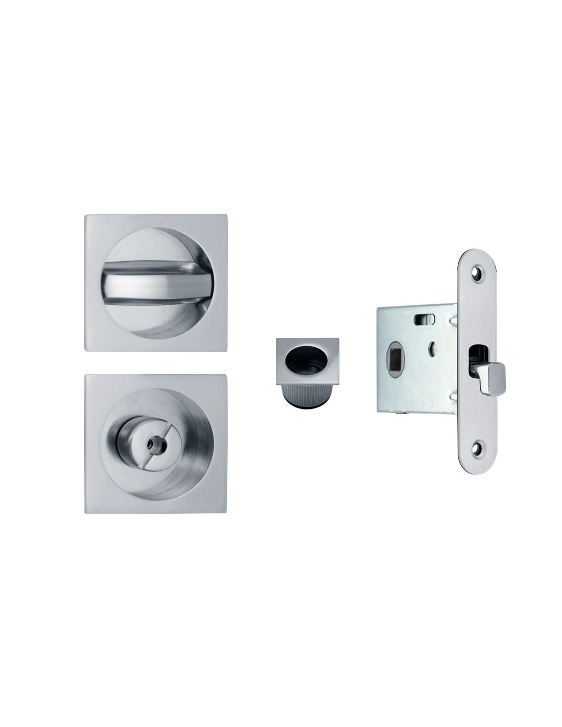 Conjunto kit uñero cuadrado níquel satinado con condena para puertas correderas.
