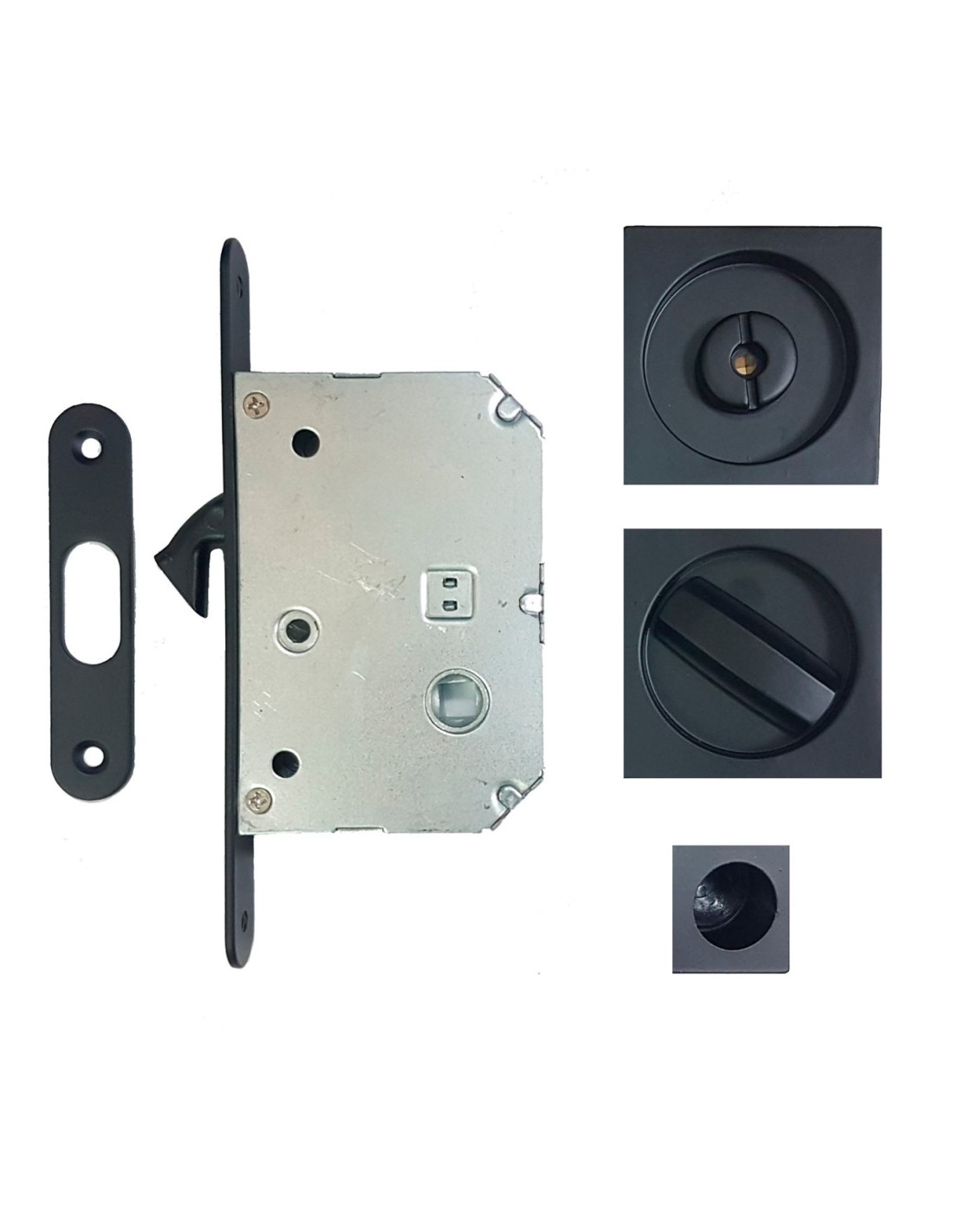 Conjunto kit uñero cuadrado negro con condena para puertas correderas.
